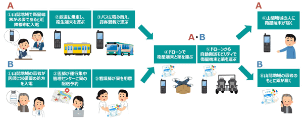 同実証実験では、ドローン、鉄道、路線バス、自動搬送モビリティなど複数のモビリティを活用して、ヒトとモノの移動改善や最適化、効率化を図り、災害発生時や平常時の生活交通・物流の生活インフラを維持する持続性の高いモデル構築を目指す。複数のモビリティを融合した配送の実証は日本初となる(同協議会調べ、2021年11月時点)。