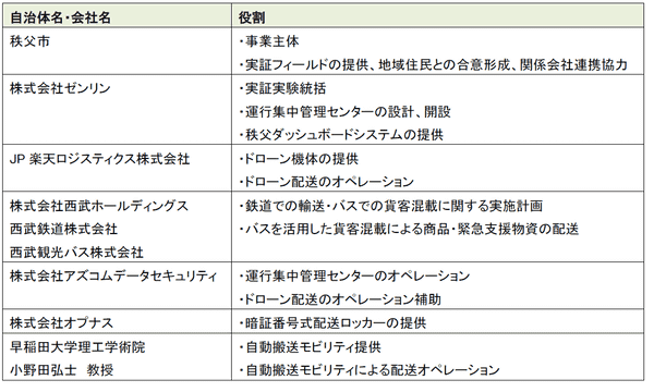 秩父市生活交通・物流融合推進協議会は、2021年11月5日から26日にかけて、災害発生時・平常時における複数のモビリティを連携した配送実証を行い成功したことを、2021年11月26日発表した。