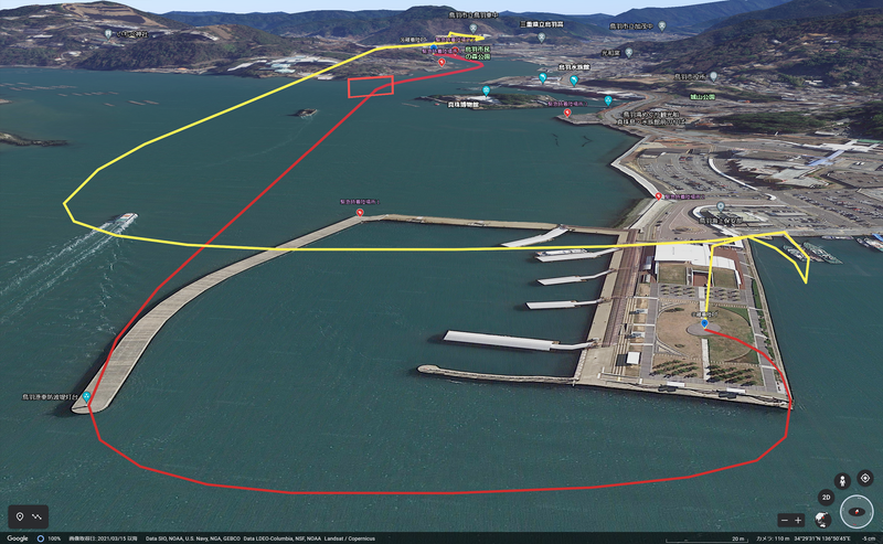 ドローン飛行経路 :鳥羽マリンターミナル↔︎福祉センター・大明東町駐車場