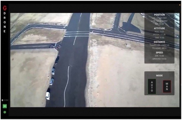 飛行試験は、南相馬市の協力のもと、同市小高区福祉サービスセンターから菊池製作所南相馬工場までの約5kmの区間において実施。開発中の航空管制システム上でルート設計を事前に行い、LTE通信によりドローンの無人飛行を行った。実際の利用ケースや安全性などを想定して、飛行中の様子や配送先の状況などを管理者が確認できるようドローンにカメラを取り付け、リアルタイムでその映像を航空管制システム上に伝送した。画面にはフライト情報(位置や高度)も表示される。