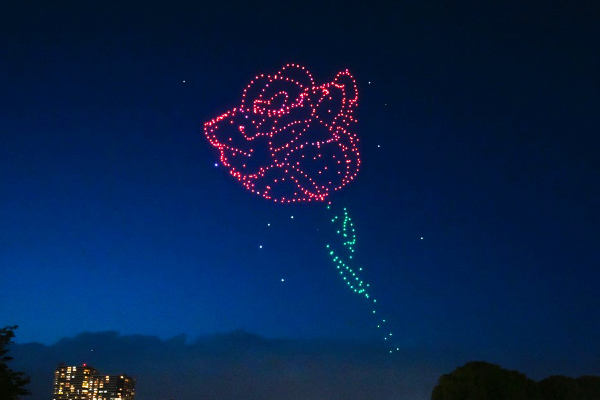 同機は屋外ドローンショーのために開発されたもので、ドローンショーに求められる飛行の正確性を備え、さまざまな表現に対応する。