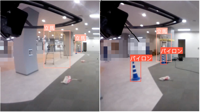 5. 1および2の自律飛行で取得した動画をAIで解析し、現場資材(パイロン、立馬)を検出。