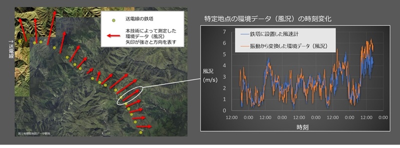 これにより、広範囲に設置されている送電線近傍の環境データ(風況)を効率的かつ正確に取得できるため、ダイナミックレーティングやドローンを活用した巡視点検への適用拡大が可能になり、再生可能エネルギーの導入拡大や送電設備の保全業務のさらなる高度化が実現できるとしている。