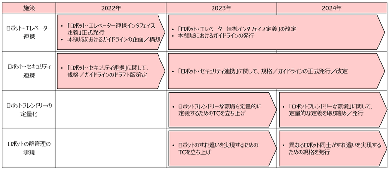 設立由来となった施設管理TCでは業界横断的な企業があらゆる施設においてロボット導入を実現するための手法を検討し、2021年6月に「ロボット・エレベーター連携インタフェイス定義」の暫定版を公開している。同機構は、産業界がスピード感を持って自発的にロボットの活用について検討を行うため、TFから発展的に独立する形で設立された。