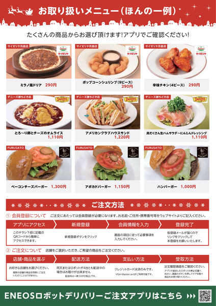 | ENEOS | 宅配ロボット「デリロ」の保有・保管・運用および注文・宅配プラットフォームの運営 |