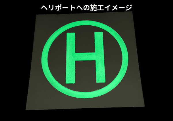 屋外・アウトドアなど過酷な環境で使⽤可能な耐候性・耐摩耗性・耐薬性にすぐれた⾼輝度蓄光コーティングで、太陽光に45分当てると、8~12時間発光する。半永久的に何度でも繰り返し使用可能。1時間後の輝度は380mcd/m²以上という⾼輝度を実現した。⾼輝度蓄光式誘導標識として、誘導灯の代替品として認められているスペックを有している。