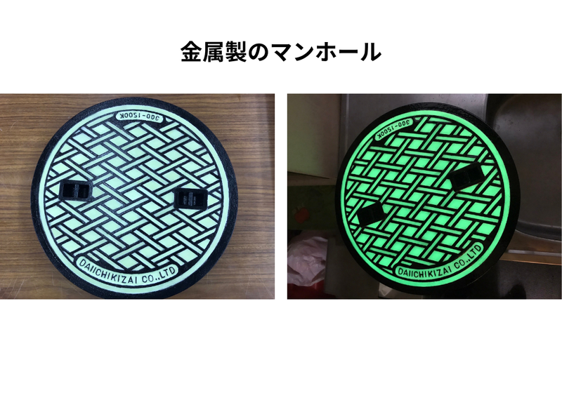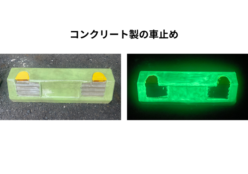 素材に合わせたプライマー(下地材)を同時に開発し、コンクリートや⾦属、樹脂、⽊製品、モルタルなど⼀般的な蓄光塗料では塗装が困難なさまざまな素材に対応する。⾼輝度蓄光材に、防⾷性・耐候性・耐摩耗性・耐薬性にすぐれたコーティングを配合することで、素材⾃体の劣化も防ぐという。