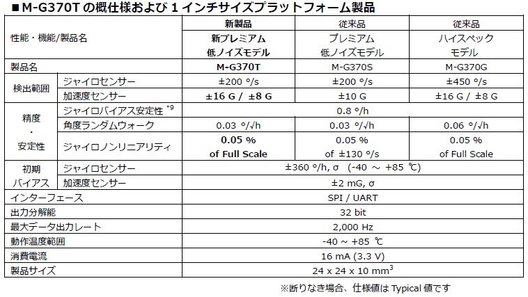 2024年3月7日、セイコーエプソン(以下、エプソン)は、高性能な6軸センサーを搭載した慣性計測ユニット(IMU)(※1)の新ラインアップとして、低ノイズのプレミアムモデル「M-G370PDT」(以下、M-G370T)を開発、2024年2月より量産を開始したことを発表した。