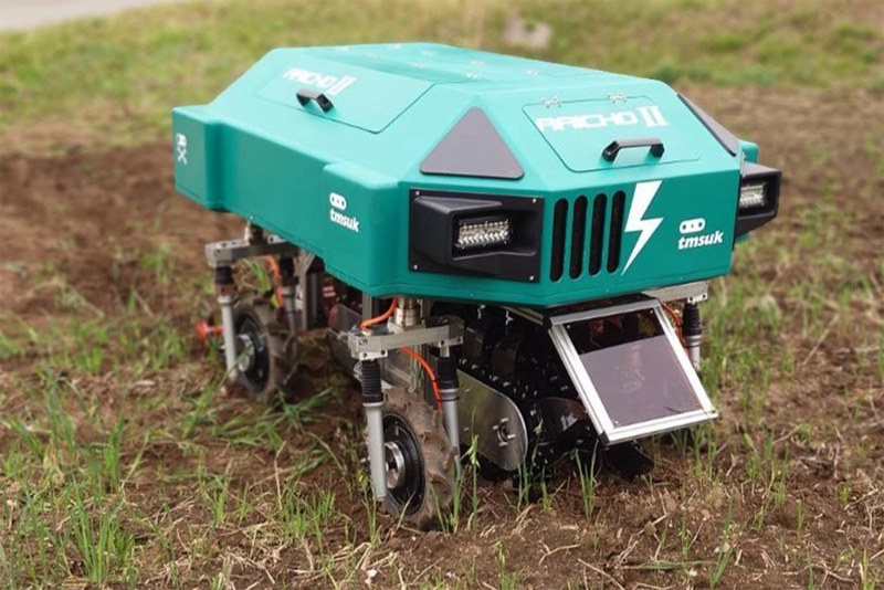 新型雷鳥2号は、各種アタッチメントを付け替えることで、耕起、収穫等を完全電動で行うことができる多機能型農業ロボット。