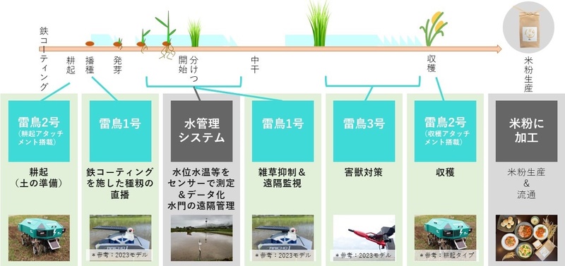 同社は今後、農業ワークロイドを順次開発・投入し、米粉用稲作から米粉の流通までを一気通貫で行うことができる省力化農業を確立し、全国に広めるとしている。