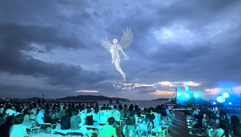 イベントのオープニングとエンディングでそれぞれ1000機のドローンショーを実施。光と音楽が1万3000発の花火とシンクロし、夜空に天使や鳳凰などのモチーフをドローンで描いた。ショーの後半では会場となったPayPayドームや福岡タワーなどの限定アニメーションも表現され、会場からは歓声があがった。
