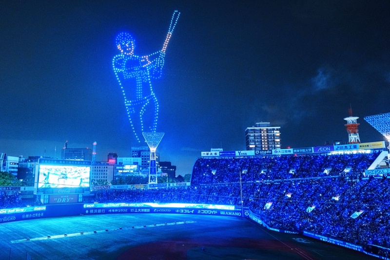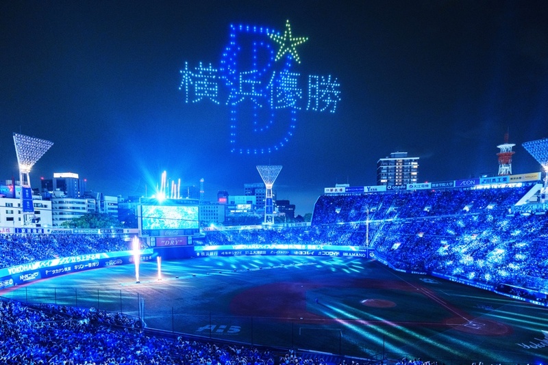 試合終了後に行われたドローンショーでは、横浜DeNAベイスターズの選手たちの活躍する姿や、今年のテーマでの一つである青薔薇とともに「夢は叶う」「横浜優勝」などのメッセージがスタジアムの夜空に出現し、大きな歓声が上がった。