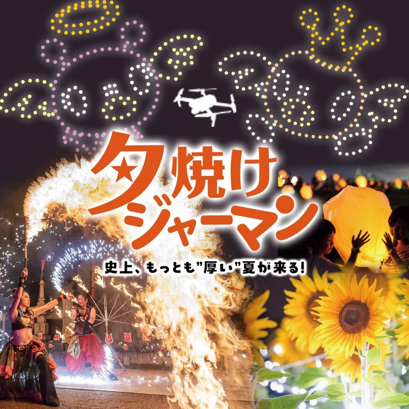東京ドイツ村では「夕焼けジャーマン」と題し、夏の夜間イベントを開催。昼間とは違う幻想的な雰囲気の「ひまわりイルミネーション」をはじめ、「500機のドローンショー」「LEDスカイランタン」の打ち上げや、ファイヤーパフォーマンスチーム「火付盗賊×パイロラボ」による特効ファイヤーパフォーマンス、YouTubeで人気のキャラクター「まいぜんシスターズ」とのコラボ企画、ソーセージフェスト&ドイツ生ビール飲み放題、LIVEなどを日替わりで開催する。
