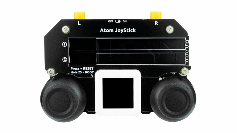 M5Atom Joystickは、AtomS3とSTM32マイコンを使用した、汎用性の高いプログラマブルデュアルジョイスティックリモートコントローラー。5方向ジョイスティック2本、ファンクションボタン2個、インタラクションとステータス表示用のRGB LEDを内蔵している。M5Stamp Flyのリモートコントローラーとして、またバッテリーの充電器として使用できる。