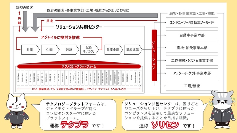 ジェイテクトグループは、製品と製造設備に関する要素技術や知見であるコンピタンスを集約したテクノロジープラットフォームを活用し、課題解決策を提案するソリューション共創センターの開設を進めている。今回のフライトコントローラー開発は、テクノロジープラットフォームとソリューション共創センターによって同社が目指すソリューションプロバイダーとなる第一歩になる。