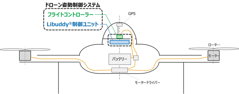 点検・測量や短距離物流などに利用されるマルチローター型ドローンは、複数のプロペラのローター回転数を制御することで飛行している。この制御には、複数のセンサーに基づく安定姿勢の演算とローターへの指令といった高い応答性が求められる。