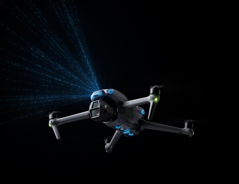 前方LiDARと下方赤外線ToF(飛行時間)センサー、6個のビジョンセンサー(前面、背面、下部に各2個)を搭載し、夜間撮影時の全方向障害物検知を実現。障害物を自動で識別、回避し、安全に夜間撮影を実施できる。