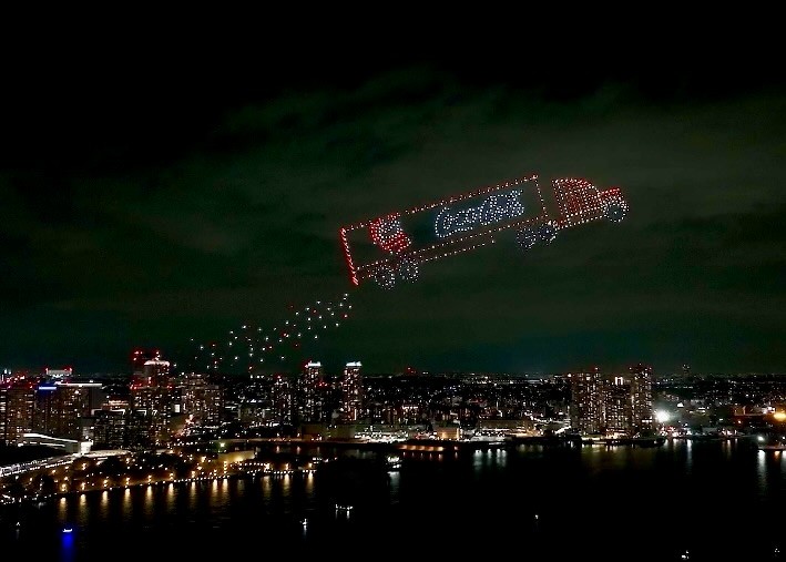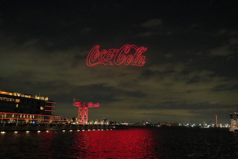 「コカ・コーラ クリスマスドローンショー 空飛ぶクリスマストラック」と題し、2023年に横浜で実施したドローンショー。今年は11月27日にメリケンパーク(兵庫県神戸市)、12月7日には横浜港 新港ふ頭付近(神奈川県横浜市)で開催された。
