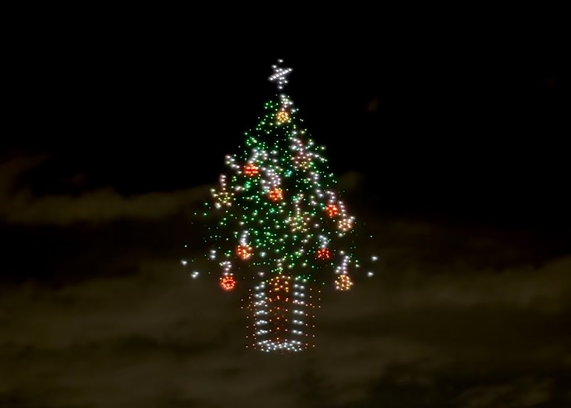 写真:ドローンショーで夜空に表現された、クリスマスツリー