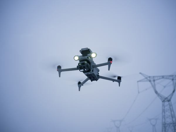 写真:ライトをつけて飛行するDJI Matrice 4T