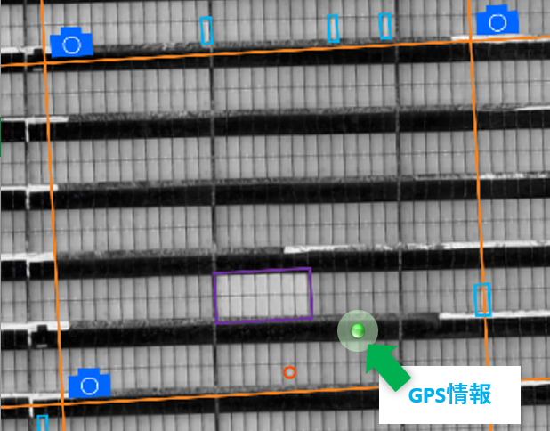 赤外線動画から解像度を落とすことなく発電所全体のオルソマップ(正射投影による図化)を作成し、AIによる自動解析を実施することで高精度の検査結果を実現。(エアロセンスと共同開発) - タブレット端末での検査結果確認と現地ナビゲーション