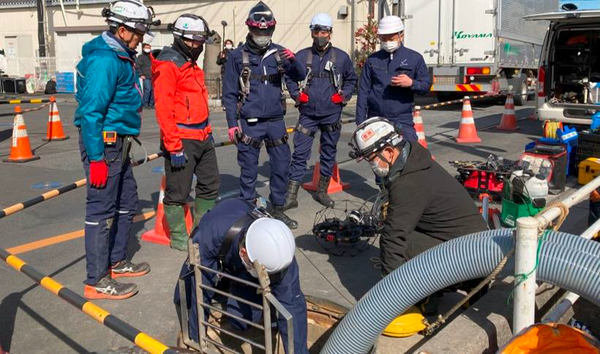 ブルーイノベーションは、日本UAS産業振興協議会(JUIDA)の協力要請を受け、2025年2月5日、埼玉県八潮市の道路陥没事故現場において屋内点検用ドローン「ELIOS 3」を活用した下水管内調査を実施した。