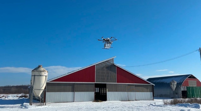 北海道更別村とSocial Knowledge Bank、長大、イームズロボティクス、AIRSTAGEの5者は、更別村スーパービレッジ構想の一環として、2025年1月29日から30日の2日間、ドローンを使って牛乳検体を配送する実証実験を行った。