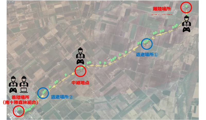 | 中継地点 | 更別地区で一度機体を着陸させ、バッテリーを交換後に再度離陸 |