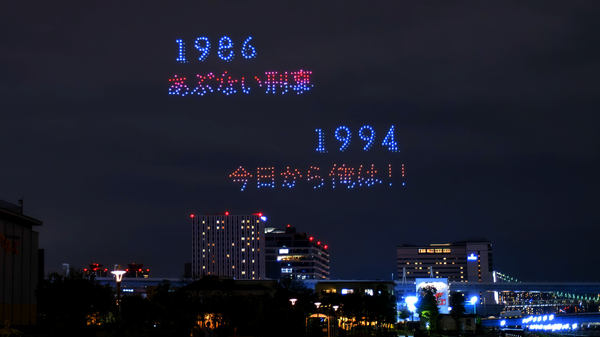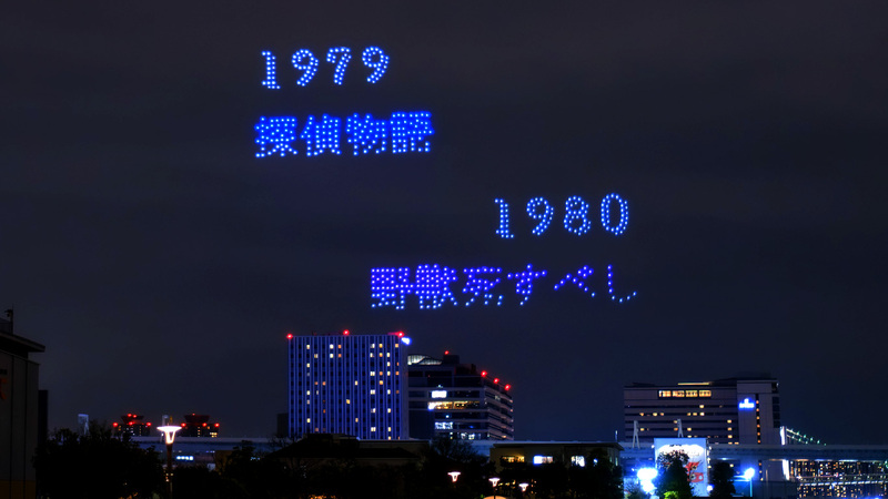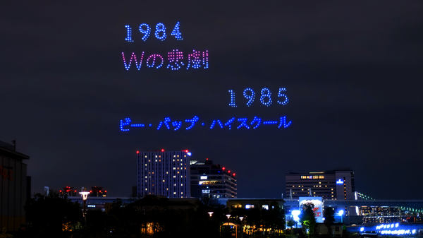 事前告知を行わないショーとして実施したもので、東映のオープニング映像「荒波」から始まり、探偵物語(1979)、ビー・バップ・ハイスクール(1985)、GO(2001)、ゼブラーマン(2010)、花まんま(2025年4月25日公開予定)などが次々と夜空に描かれた。
