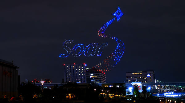 このイベントは、LEDドローンを活用した新たなプロジェクトSoarとして提供し、企画・演出はドローンショー・ジャパンが担当した。