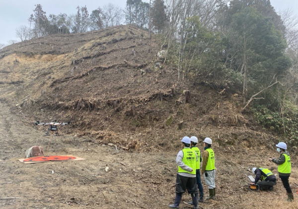 | 2025年3月 ・特殊大型ドローン(最大49kgの物資運搬が可能)による、総重量1,000kgの苗木や資材(架線集材用および獣害対策用)の急傾斜地・遮断地域・未舗装地域などへの運搬 ・美郷町内に中国営業所を構えるタイガーの社員6人に対して運用講習を実施し、ドローンの操縦オペレーターの育成を支援 |