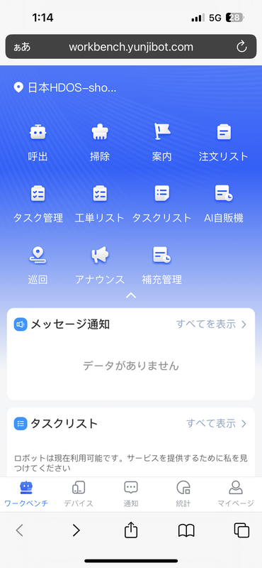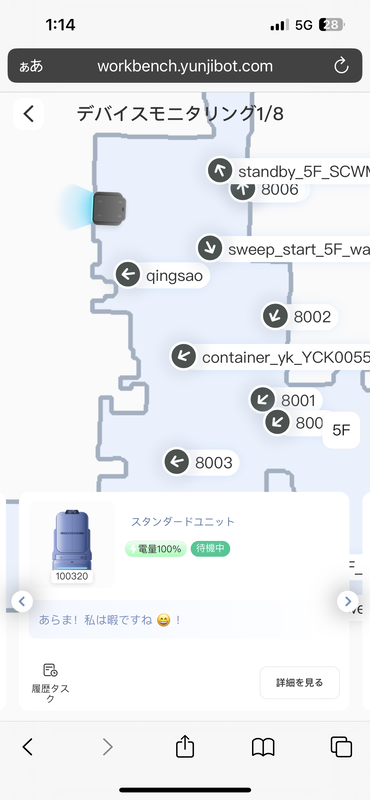 ロボットの操作からタスク完了までのスピード、ロボットのステータス表示等をスマートフォン1台で完結。清掃ユニットでは清掃済み箇所の表示や、今どこを掃除しているかの確認まですべてリアルタイムで把握することができる。