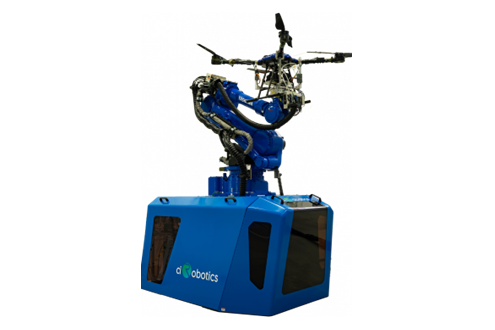 ドローンアナライザーは、大型のロボットアームに軸力計などの計測機器を搭載し、ドローンを傾けたり上下に移動させたりすることで飛行時の挙動を模擬的に再現し、運動性能解析や出力性能測定を行うことができる評価装置。墜落などのリスクを伴う屋外飛行試験を行うことなくドローンの飛行性能を定量的に評価できるため、開発コストと試験時間の大幅な削減が期待される。ドローンアナライザーは現在、国内では福島県および大分県の2か所に設置されている。