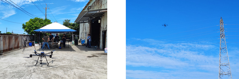送電設備点検アプリケーションPOWER GRID Checkと台湾製ドローンの組み合わせによる、ドローンを活用した送電設備点検のデモンストレーションを実施した。