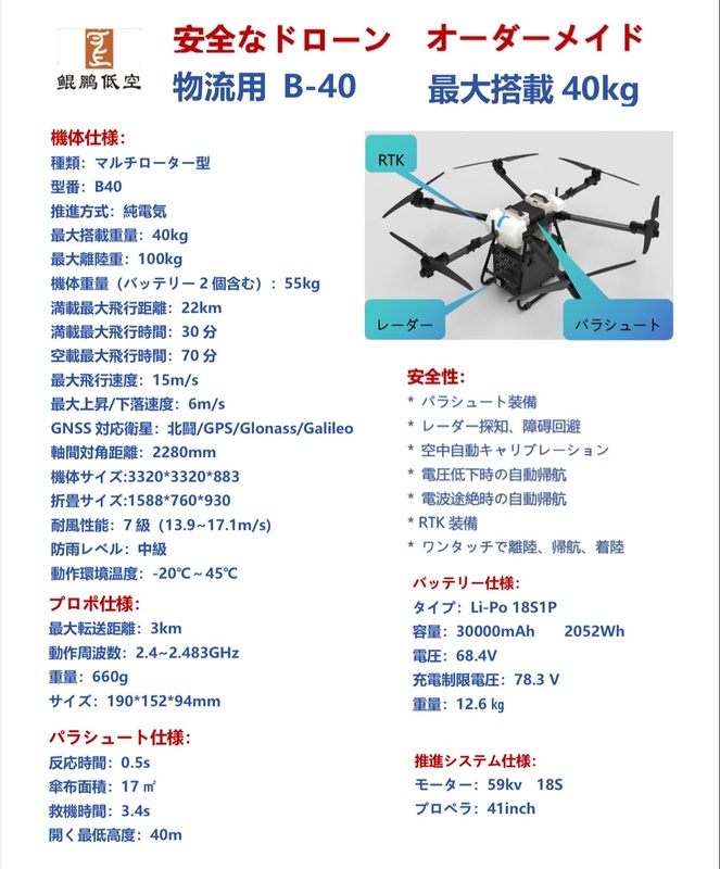 2025年6月10日、SERTは、中国・広東鯤鵬低空通用航空科技(以下、鯤鵬社)が開発・製造する物流用ドローンの日本国内総代理店として、製品の製造・販売・アフターサポートサービスを本格的に開始したと発表した。ドローン専用配達ロッカーやドローン関連の構成部品、消耗品の調達にも対応し、日本国内の多様な導入ニーズに応える体制を整えるとしている。
