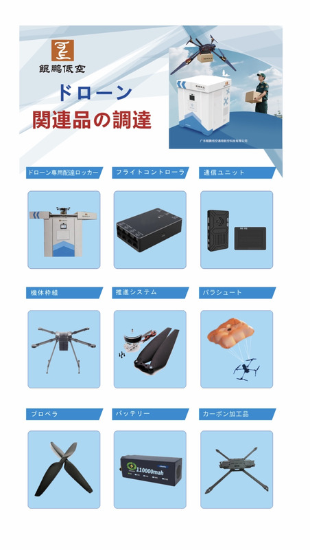 機体本体に加え、ドローン関連部品(ドローン専用配達ロッカー・パラシュート・農業ドローン用ノズル・プロペラ・モーター・通信モジュール・バッテリー・RTKユニット等)の個別調達にも対応。製品の一括導入、部分的な自社製品への組込み検討など、柔軟な支援を行う。