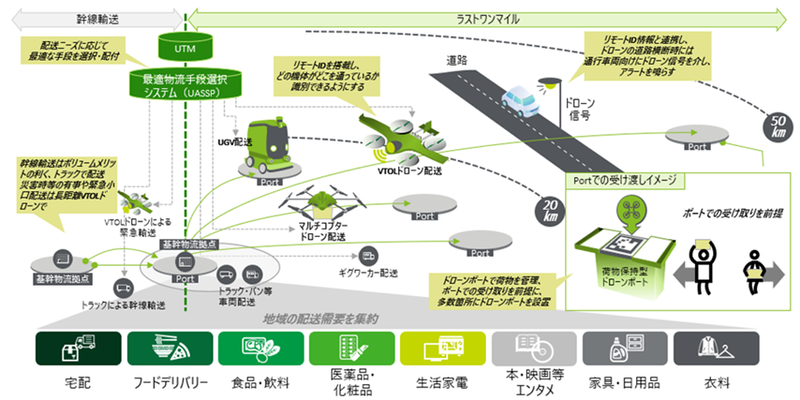 ドローンを活用した地域横断物流モデルを確立し、福島特区から全国へ社会実装を進める方針だ。