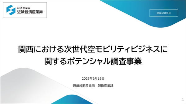 2025年6月19日、近畿経済産業局は、次世代空モビリティビジネスに関して、特に空飛ぶクルマ観光での展開におけるポテンシャルに着目した調査を実施し、報告書を作成したことを発表した。