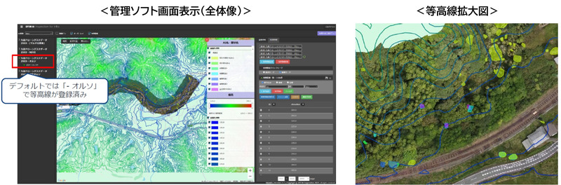 オルソ自動生成のタイミングで、AI解析結果とあわせて標高図データを反映。
