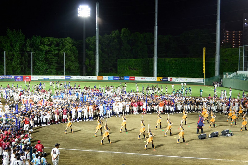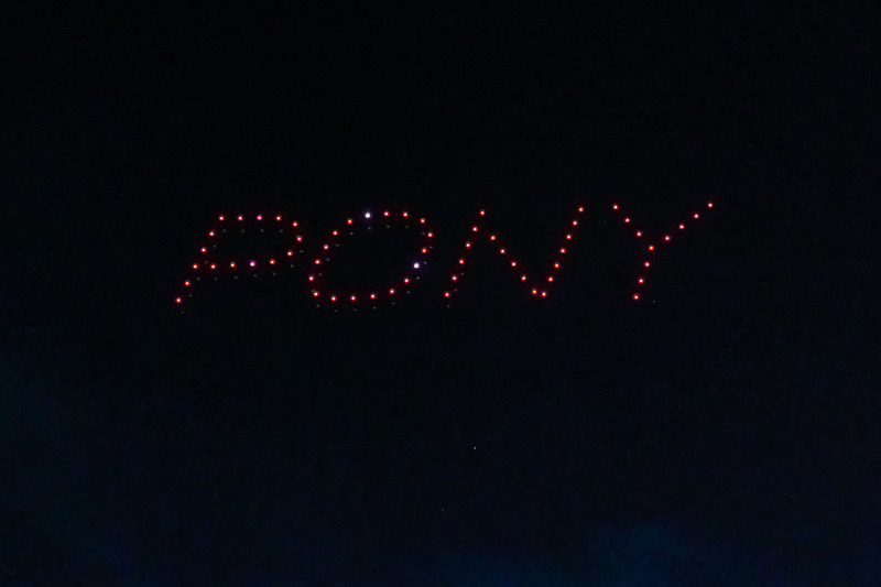 アメリカ発祥の中学生硬式野球リーグである「ポニーリーグ」。日本公式大会の開幕前夜に行われた開会式セレモニーでは、ライト側の夜空で100機のドローンが野球ボールやバット、大会ロゴなどを描いた。