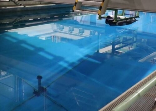 深海底の位置計測は、音響によって海底に設置された海底音響基準局(※1)との通信と測距を繰り返すことで行われる。まず、東京大学生産技術研究所の海洋工学水槽において、UAVに搭載した音響装置を用いて水中の距離計測実験を行った結果、約2cm以内の精度で計測が可能であると示された。