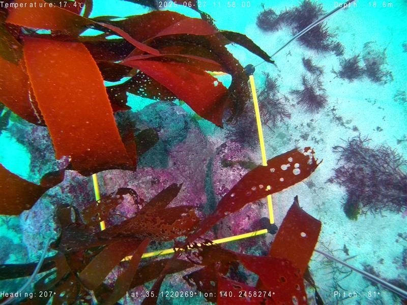 | 2025年6月 | 浜行川海域・興津海域の藻場現状把握のための調査を実施。(水中ドローンによる、藻場全体の位置・面積、海藻の種類・密度の概要の把握/植食性魚類の駆除を行う活動区、駆除を行わない対照区の位置・面積を決定/活動区・対照区の藻場面積・海藻密度を測定) |