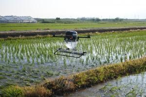 畦畔(けいはん)除草塗布ドローンによる畔や法面の除草剤塗布作業を実演。