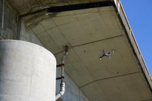 画像解析技術を活用して、壁面の模擬ひびわれ・損傷の点検を実演