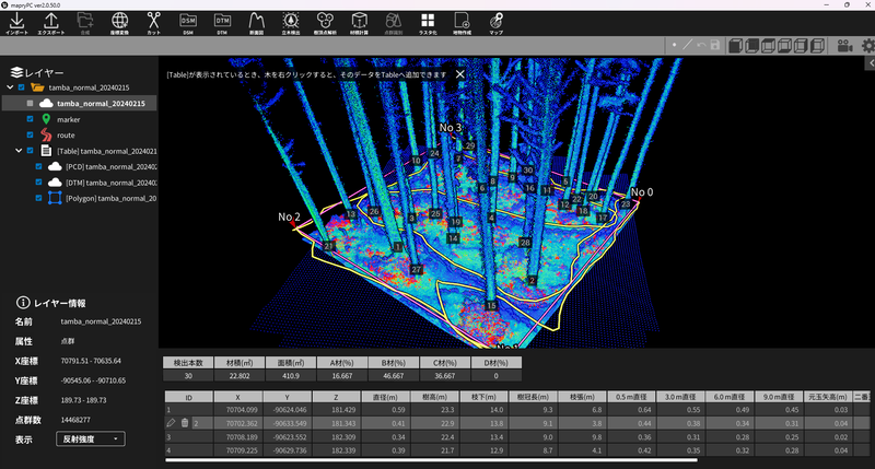 - 活用分野:森林科学(バイオマス量評価、生態調査等)