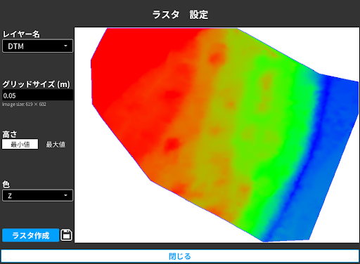 | 成果物 | LAS形式点群、DTM/DSM(5~25cmメッシュ)、GeoTIFF、断面図、体積・面積計測など |