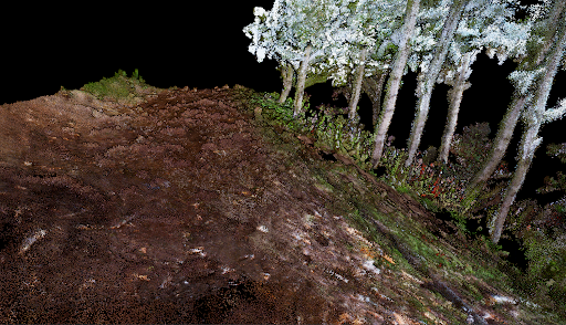 - 効果:RGB付き高精度点群で地形形状、植生、樹形の詳細を把握。都市部緑地や森林構造の解析にも活用できる。