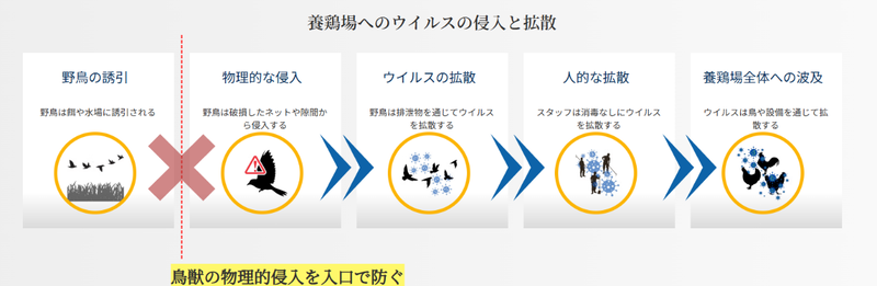 ウイルスを保持した野鳥の鶏舎内への侵入や糞便を通じて鶏舎内にウイルスが持ち込まれることが原因のひとつに挙げられているが、防鳥ネットによる被害抑制には限界があった。