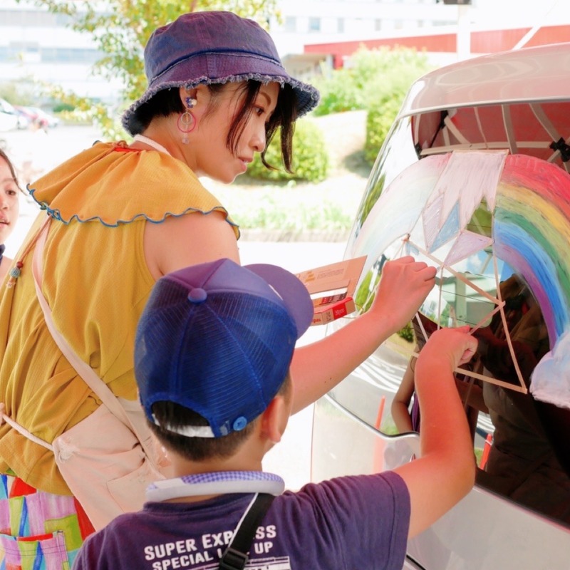 米からとれるワックスを原料とした絵具「kitpas(キットパス)」を使用して、大きなガラスのらくがき帳に自由な発想で絵を描くイベント。