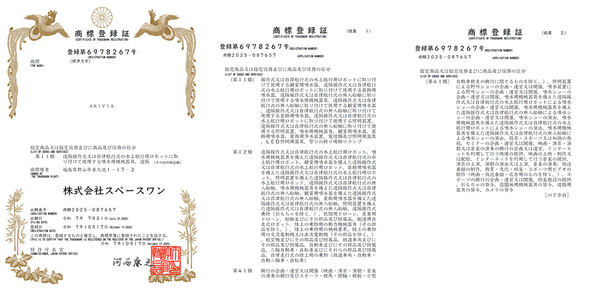 2025年10月22日、スペースワンは、開発中の水上エンターテインメントドローン「ARIVIA(アリヴィア)」の商標登録を2025年10月17日付で完了したことを発表した。この登録により、ARIVIAブランドの知的財産保護体制を強化し、国内外での製品展開を本格的に進めるとしている。